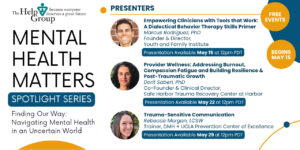 In honor of Mental Health Awareness Month, The Help Group is proud to present the Mental Health Matters Spotlight Series — a special collection of expert-led webcasts premiering throughout the month of May.